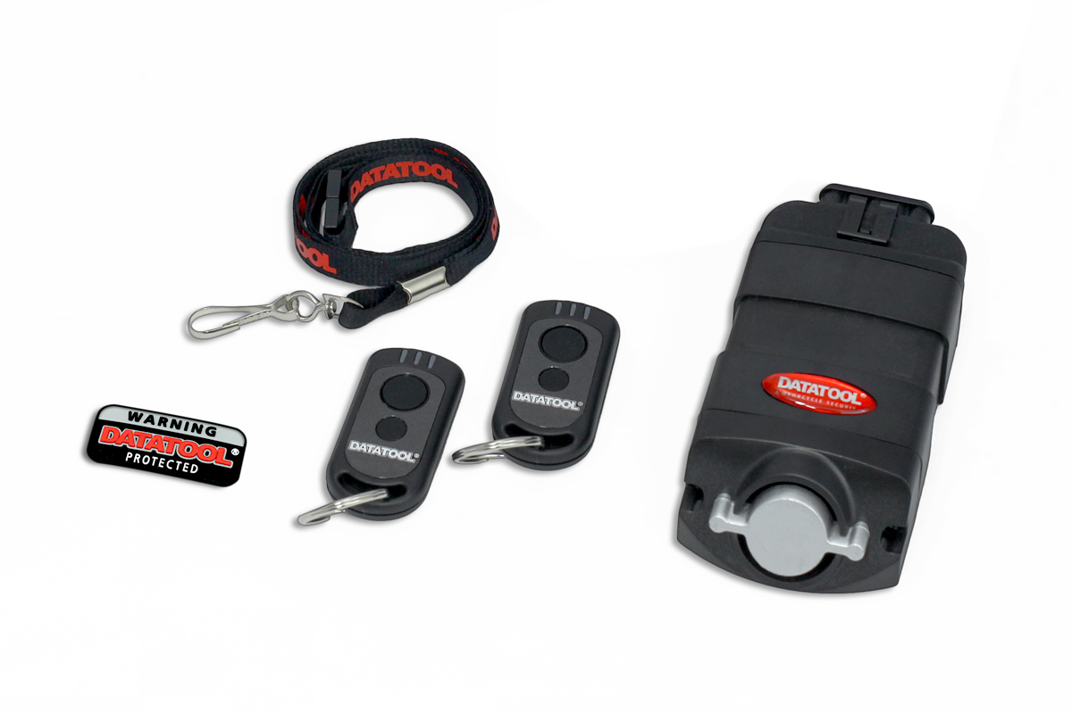 The Datatool Evo is an easy to fit alarm system designed for motorcycles and scooters with a 12v battery. Using a sophisticated movement sensor, the Datatool Evo constantly monitors for signs of unauthorised movement, triggering the loud integrated siren when the movement exceeds the permitted level. The movement sensor can be adjusted via the remote control to one of three levels to customise the alarm to your preference.