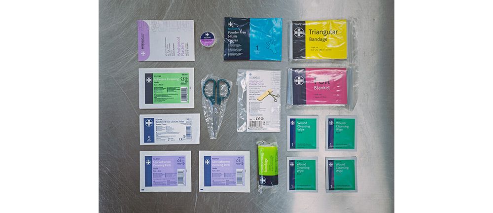 A 'must-take' medical kit packed full of basic first aid equipment, contained within a durable BikeTrac bag.
