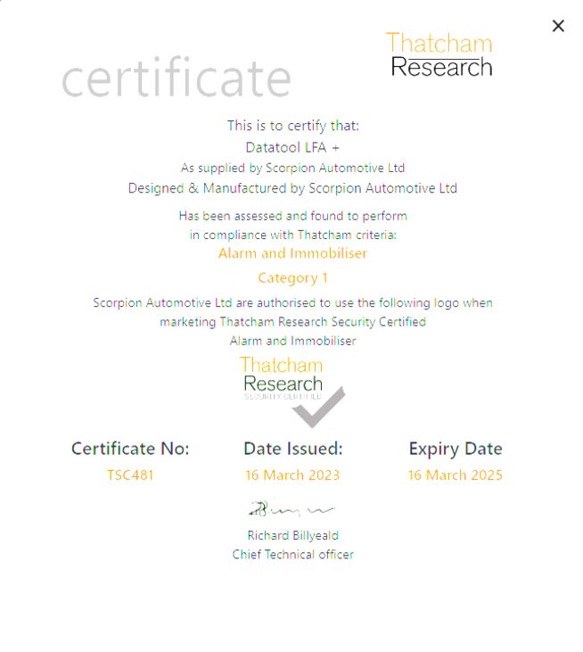 Thatcham Cat1 Insurance Approved Alarm/Immobilisers