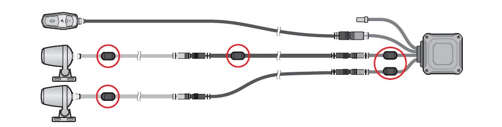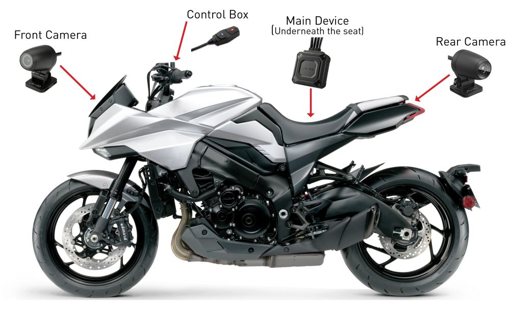 Modular twin camera system for motorcycles and ATVs. Waterproof cameras and control pad.